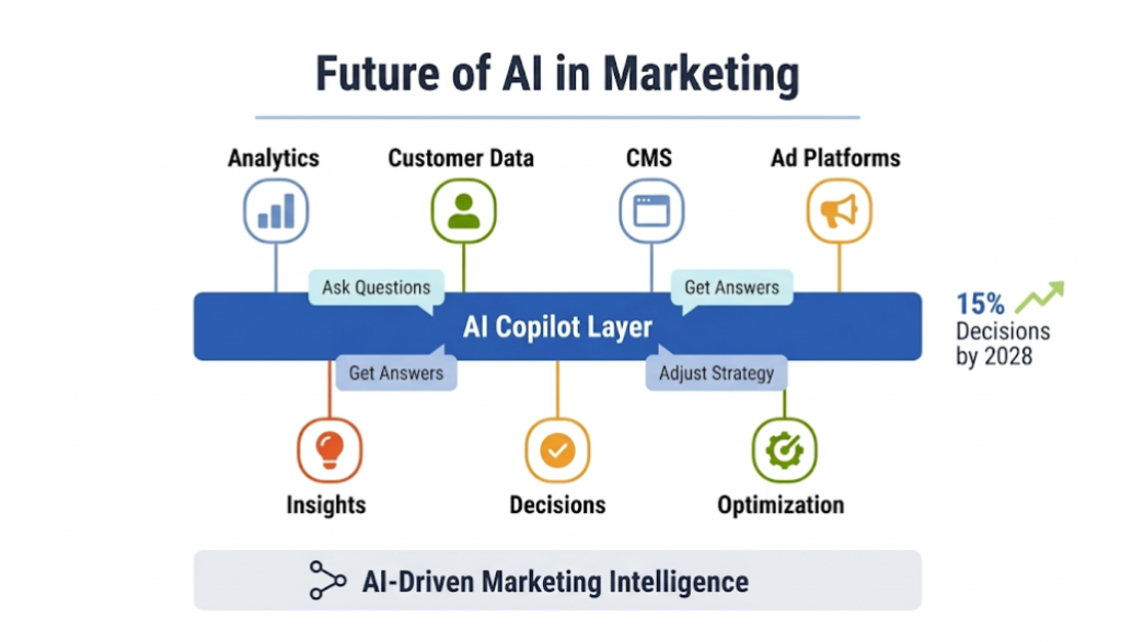 Over the next several years, I expect AI systems to become deeply embedded in the marketing technology stack. This shift is not speculative. According to Gartner projections reported by Reuters (2025), AI agents like Claude are expected to influence 15% of daily business decisions by 2028, including areas such as marketing automation and analytics.