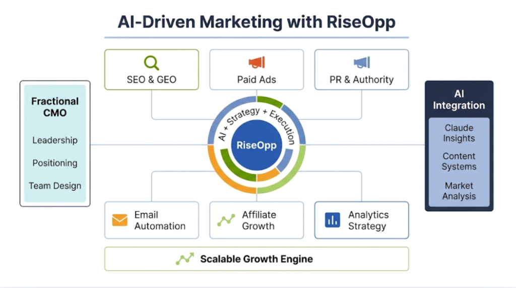 At RiseOpp, we work with companies that are navigating exactly the challenges discussed throughout this article. AI tools like Claude are changing how marketing teams research markets, develop messaging, produce content, and analyze campaigns. The opportunity is enormous, but most organizations struggle with implementation. Tools alone do not create results. Strategy, systems, and execution do.