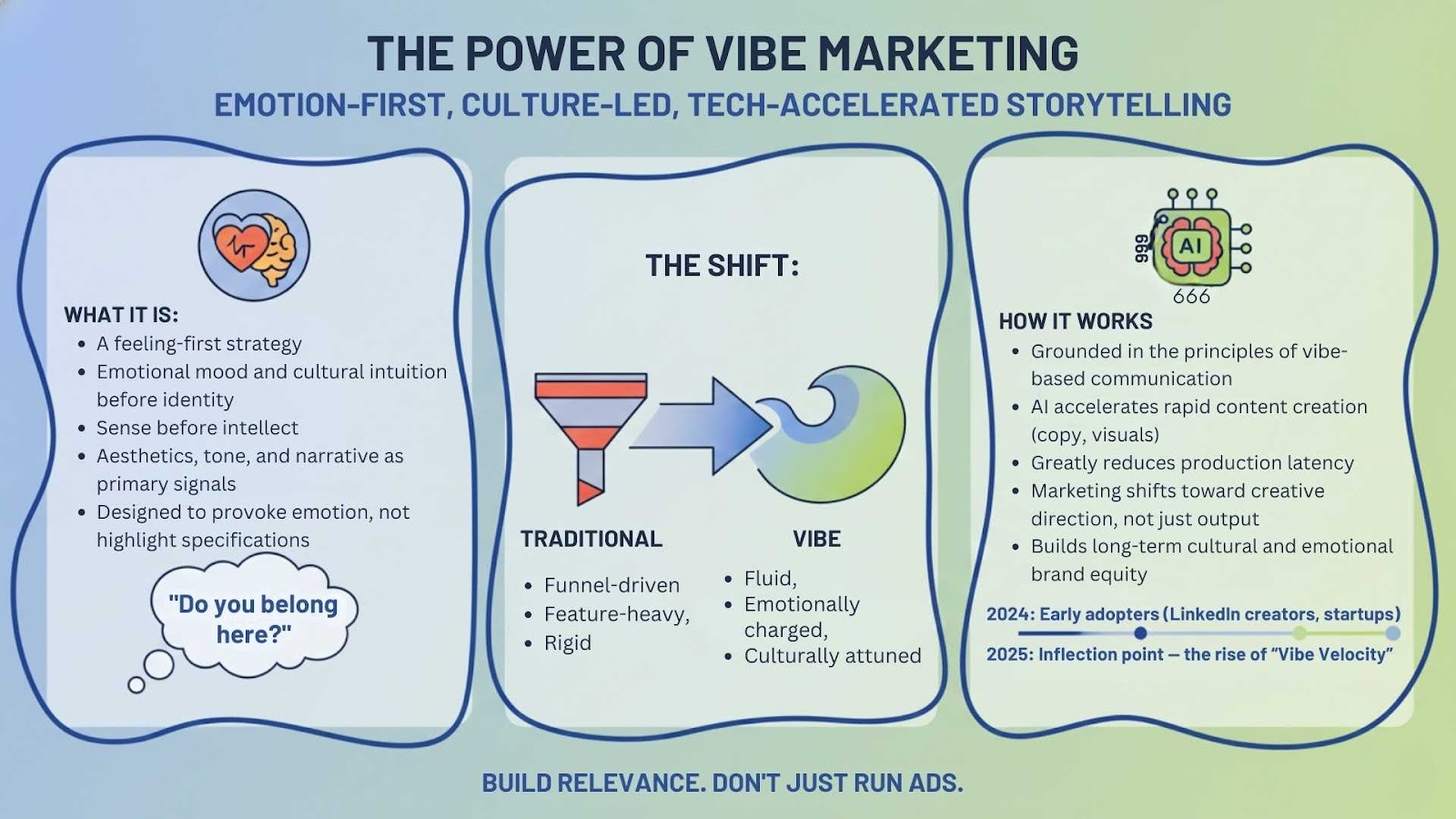 Traditional marketing explains. Vibe marketing resonates. It builds belonging before conversion and perception before persuasion.