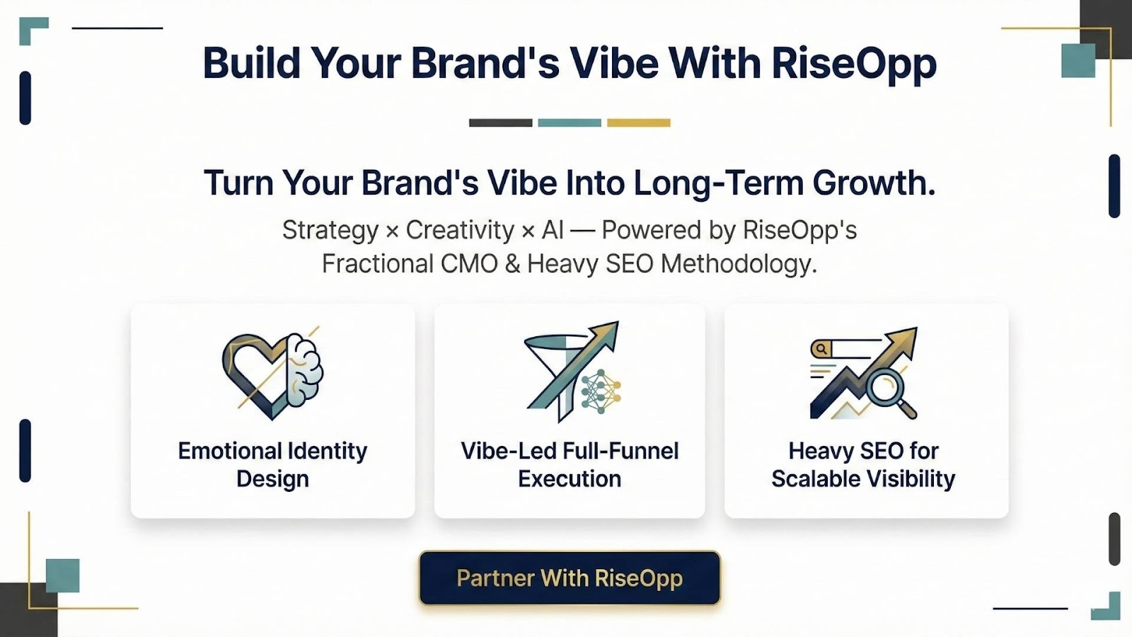 At RiseOpp, we work where strategy, creativity, and AI overlap, which is exactly the environment where vibe marketing thrives. We help brands shape a clear emotional identity and bring it to life across every channel in a way that feels consistent, culturally aware, and true to the audience they want to attract.