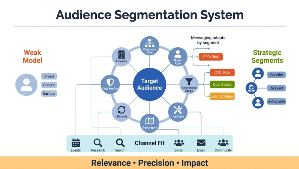 That requires more than a broad “target market” label. I want to know which segments matter most commercially, how they differ in needs and maturity, what triggers interest, what blocks action, and how they move through the decision process.