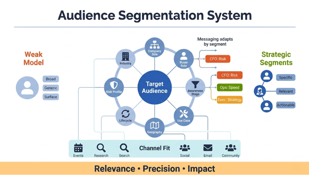 Each segment may require a different emphasis. A CFO and an operations lead may both belong in the same buying committee, but they do not need the same messaging. One cares about efficiency, control, and financial risk. The other cares about speed, usability, workflow friction, and team adoption. The integrated strategy must account for both without fragmenting the core story.