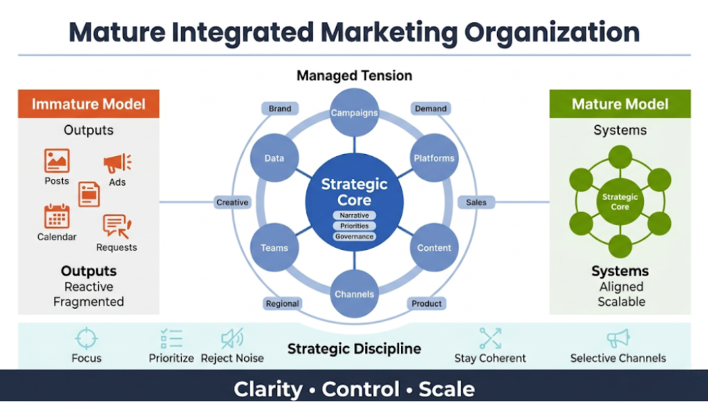 All of those pressures are real. A mature integrated marketing organization does not pretend they disappear. It manages them through a strong center.