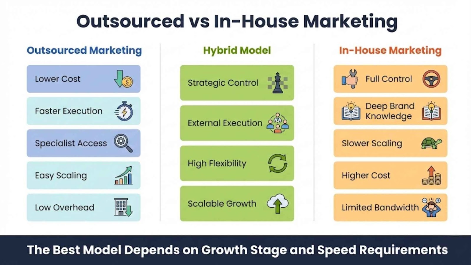 Choosing between outsourcing marketing and building an in-house team is not about determining which option is universally better. It is about understanding which model aligns best with your business stage, growth goals, and operational reality.