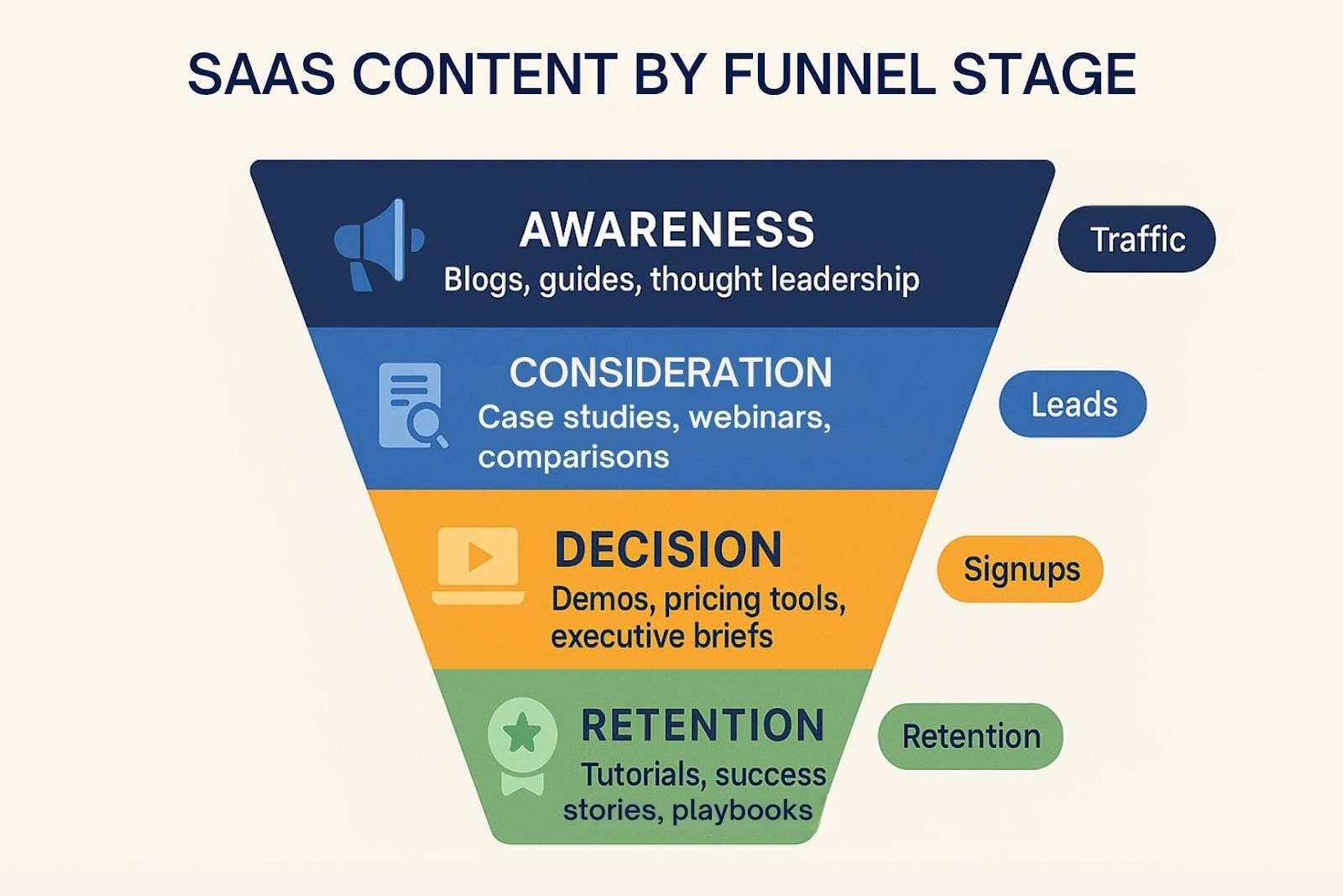 Let’s not pretend all content is created equal. In SaaS, the format you choose directly impacts not just who engages, but how far they move through your funnel. You need to be strategic, every content type serves a specific purpose in the buyer’s journey and user lifecycle.
