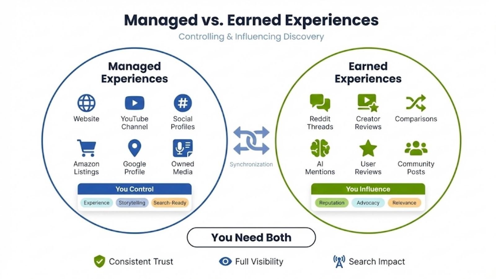 Omnichannel SEO focuses on maintaining a consistent presence and messaging across platforms. It emphasizes brand alignment. But consistency alone doesn’t make you discoverable. It doesn’t guarantee you’re participating in meaningful conversations or surfacing in the places that drive influence.