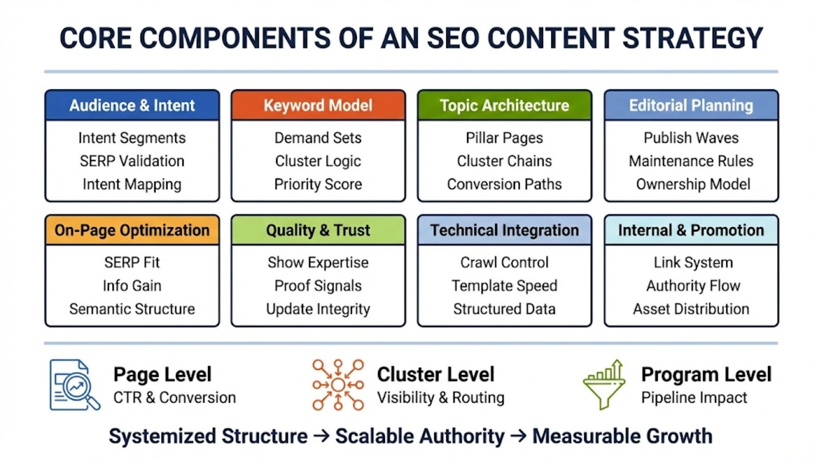 – The core components of a high-performing SEO content system