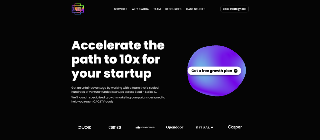 | Best for performance marketing & influencer-driven scale | Swidia | Paid and influencer strategies optimized for venture-backed startups |