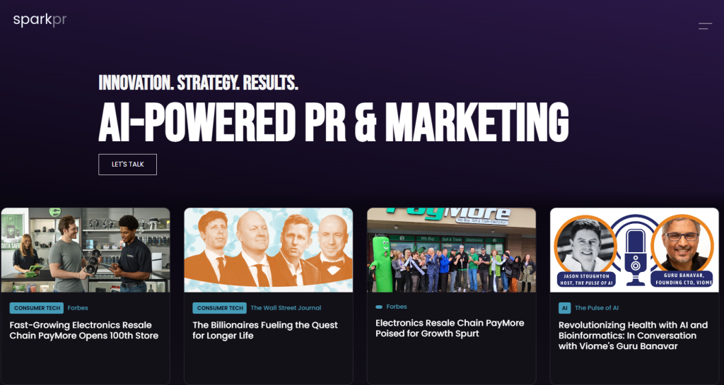 Their strengths lie in deep media relationships, strong storytelling capabilities, and targeted PR campaigns that secure placements in top‑tier outlets, podcasts, and industry publications. SparkPR’s team also supports reputation management, thought leadership positioning, and launch‑driven PR strategies that help startups build authority and trust quickly. Their proactive approach ensures that messaging is consistent, engaging, and aligned with broader business goals.