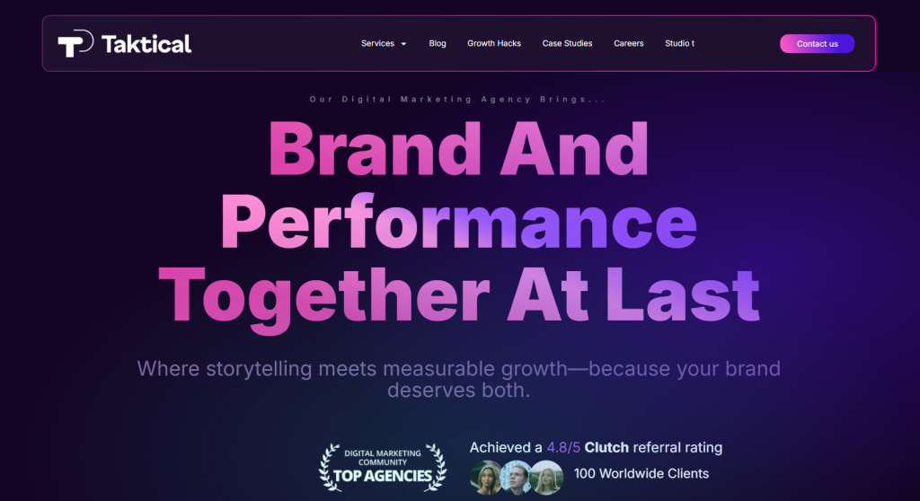 | Best for paid media & performance branding | Taktical Digital | Paid acquisition tied directly to revenue outcomes |