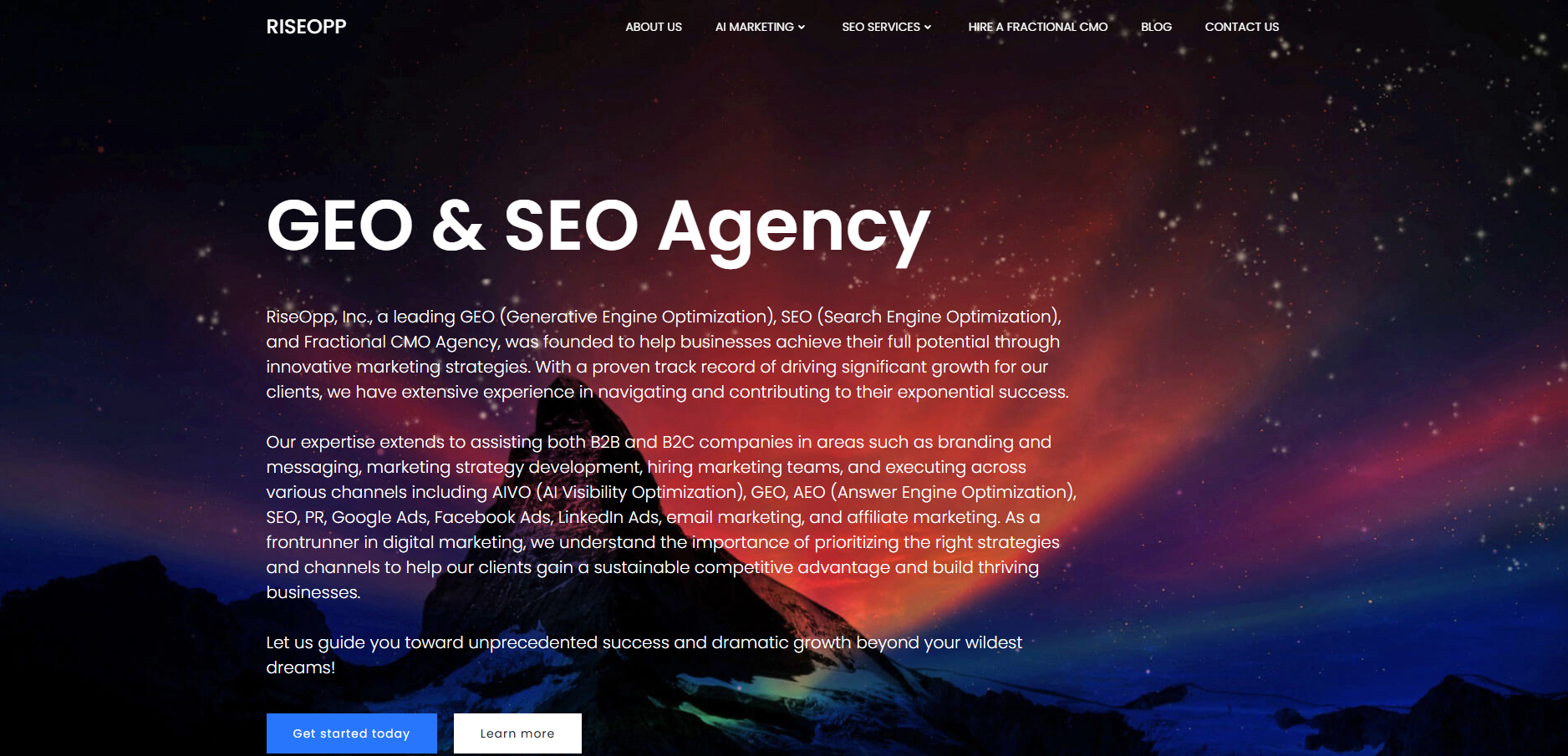 | Best for long-term SEO & organic authority | RiseOpp | Advanced SEO, GEO, AEO, and authority-building tailored to startups |