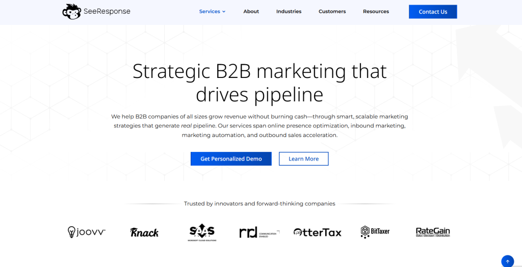 SeeResponse is a full-service B2B marketing agency focused on helping startups and tech-driven companies generate qualified leads, optimize conversion funnels, and drive measurable growth. Acting as an extension of internal teams, they offer a wide range of services including demand generation, marketing automation, SEO, email marketing, and content strategy, all tailored for complex B2B sales cycles.