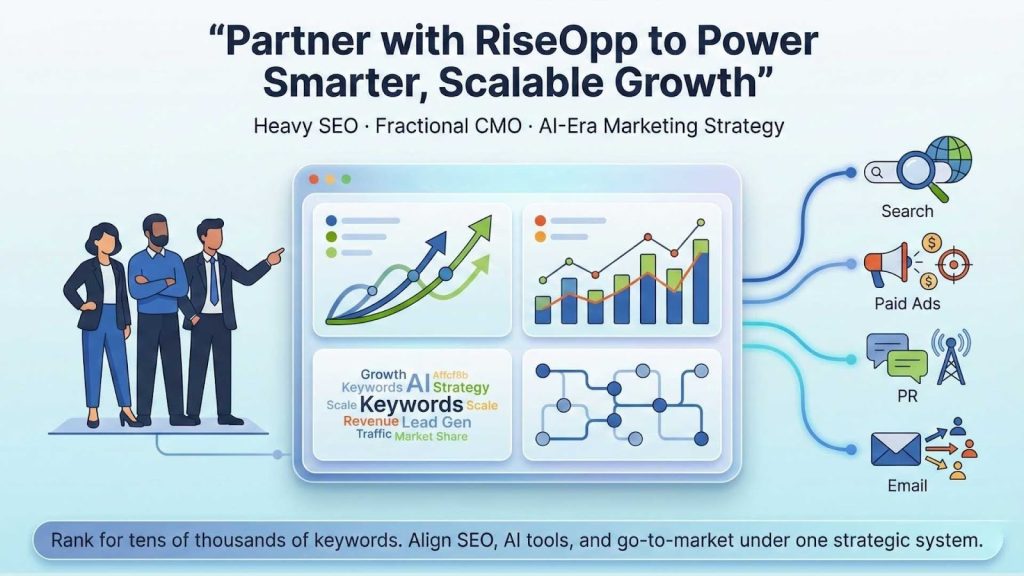 At RiseOpp, we understand that the fast-evolving world of SEO and digital marketing demands both strategy and adaptability, especially in the era of AI-driven tools. This is why our team is deeply invested in guiding companies through this complexity with a unique blend of AI Marketing strategies, fractional CMO leadership, and elite SEO execution.