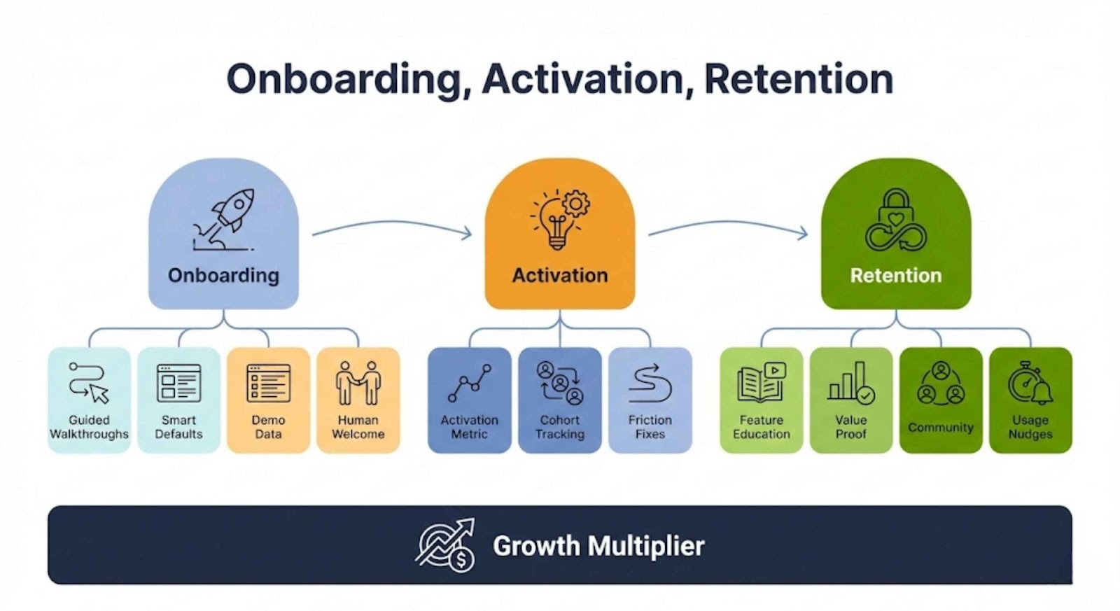 • Focused on acquisition + activation, with awareness of retention drivers